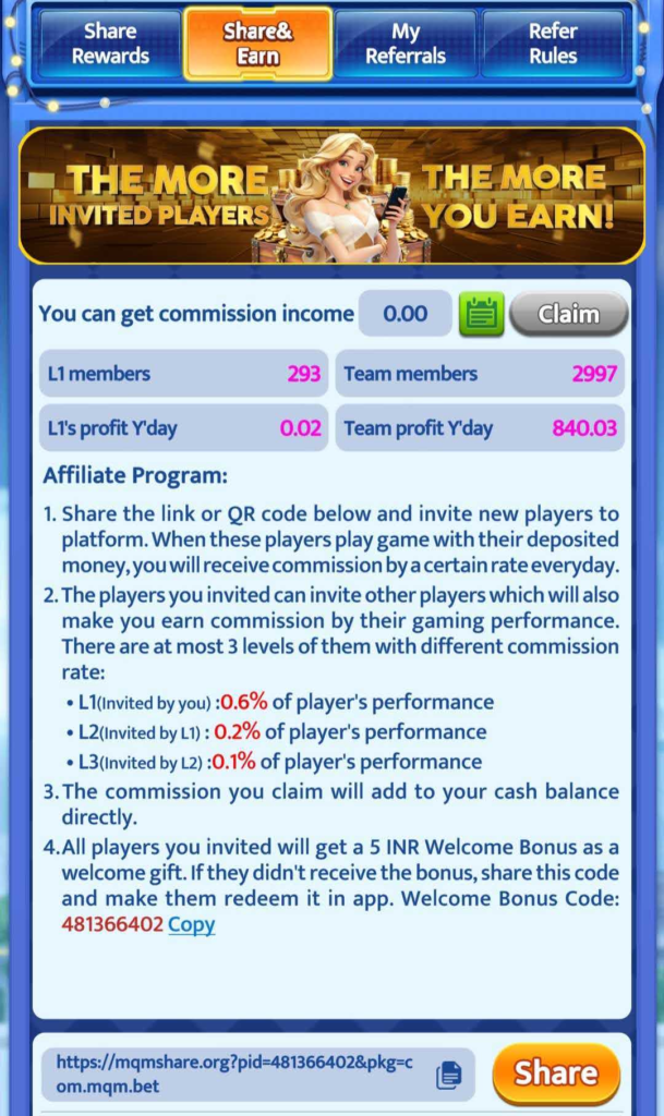 Today at MqmBet Game we’re going to tell you about the Refer and Earn program. Please stay with me in this article, where you can refer your friends and family members to join the app and earn rewards.